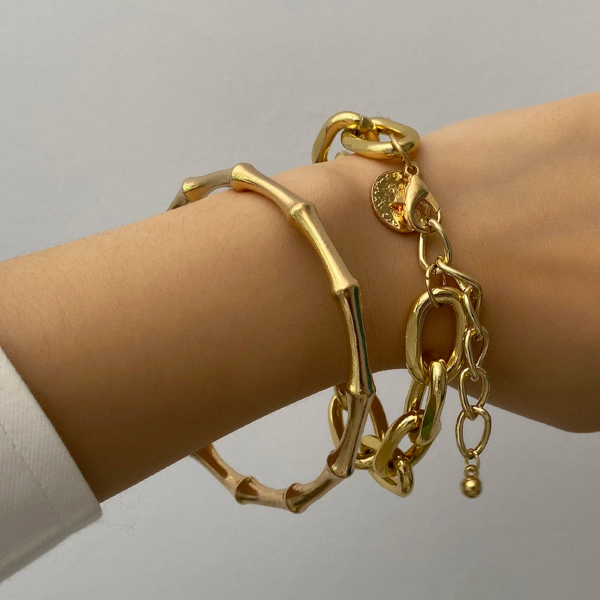 Set of Link and Bamboo Style Bracelets