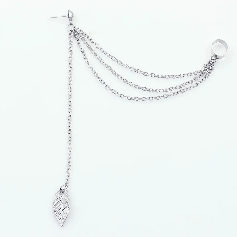 Leaf Chain Tassel Earrings